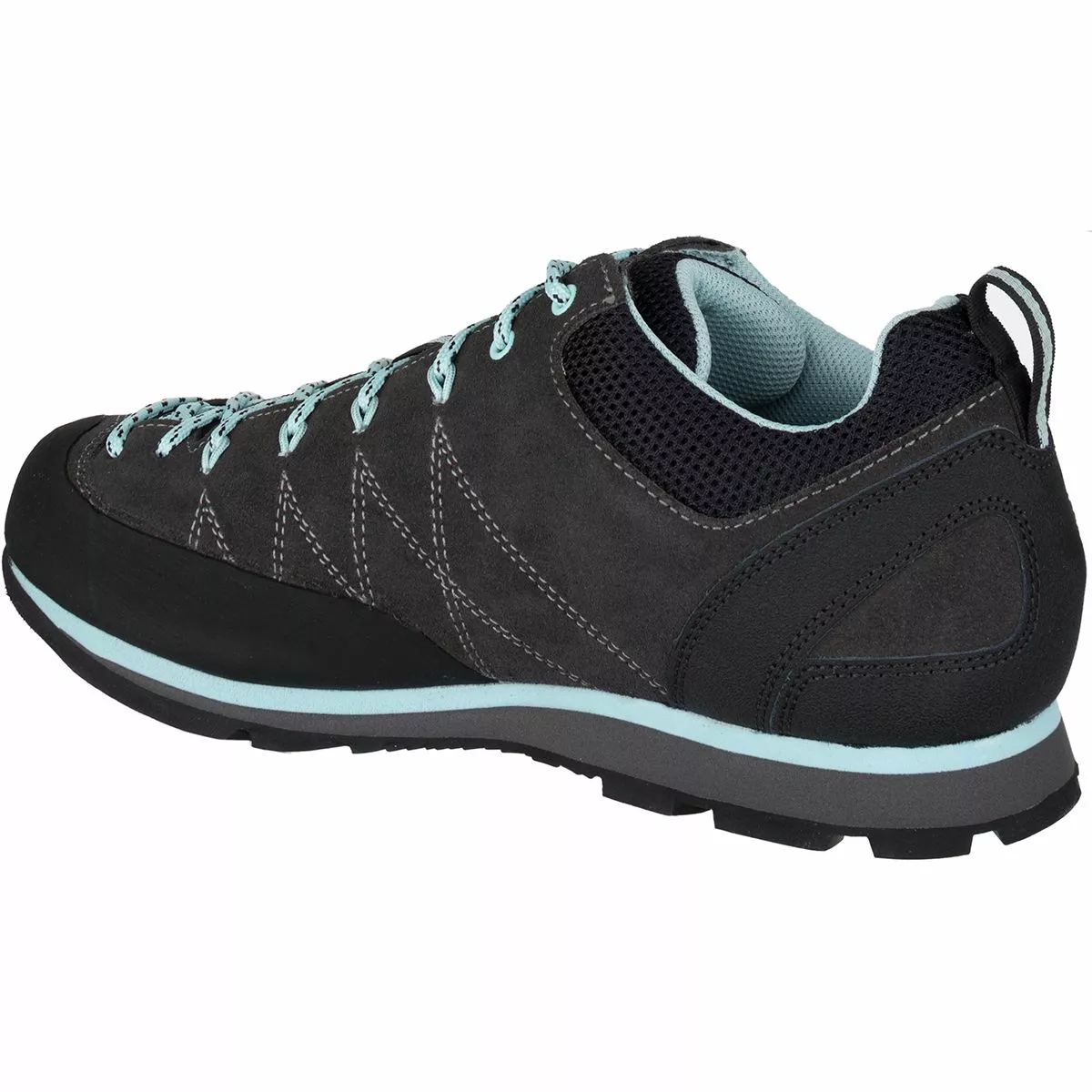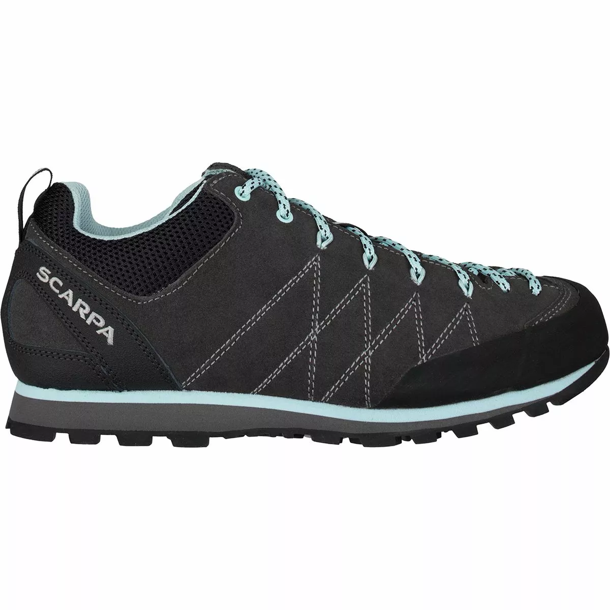 The Women’s Scarpa Crux Shoe shows that you need not worry about scrambles or loose scree as you approach the crag. Suede and recycled polyester airmesh encourages natural ventilation, with Kevlar webbing integrated for shape retention and durability. The Vibram Vertical Approach sole keeps your footing confident through sketchy scrambles, with a dual-density EVA midsole adding comfort to tough approaches and low-level climbs. A member of Scarpa’s Planet Friendly initiative to support more sustainable manufacturing practices, the Crux helps you get to the crag with confidence and a clearer conscience.
